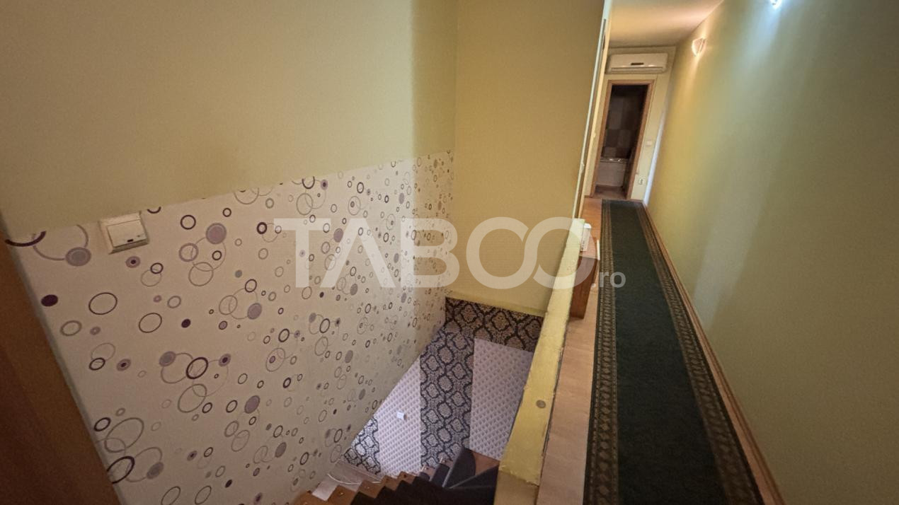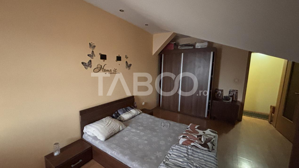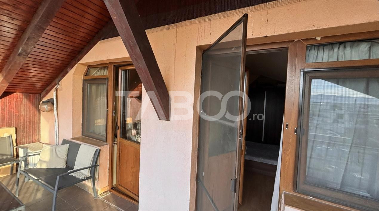 TABOO Imobiliare propune un apartament de vanzare cu 4 camere, decomandat construit pe doua etaje, situat in localitatea Sibiu, zona Turnisor, situat la mansarda intr -un imobil tip bloc mixt cu regim de inaltime pe Parter + 4 Etaje+Mansarda; anul constructiei 2012, structura caramida. Suprafata utila de 103 mp + balcon de 10 mp.