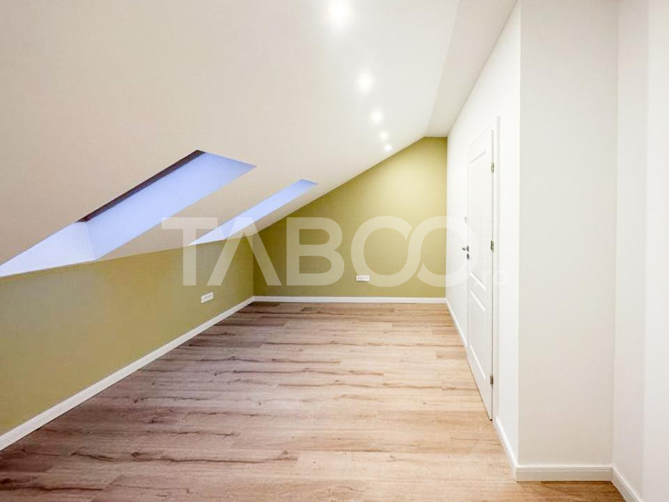 -Mansardă: hol, două dormitoare, baie;