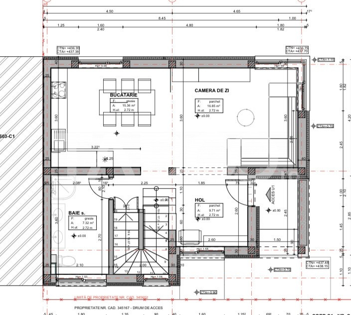 -Parter: hol, living spațios, bucătărie, baie;
