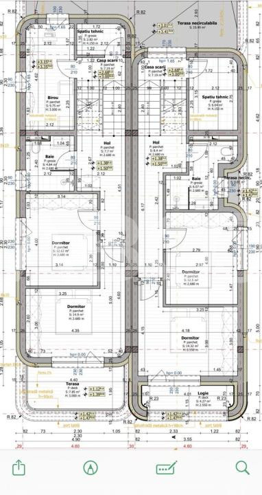 ~ Etaj 1: hol, birou, baie, 2 dormitoare, terasa ;