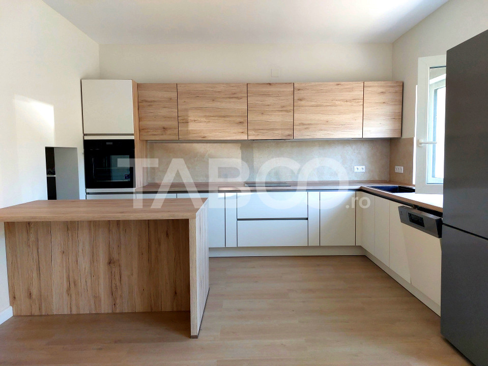 Bucataria este mobilata cu mobila de calitate si utilata cu electrocasnice noi ( frigider, plita electrica, cuptor, hota, masina de spalat vase iar masina de spalat haine este in baie).