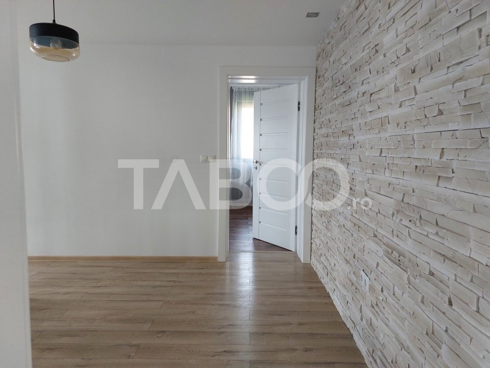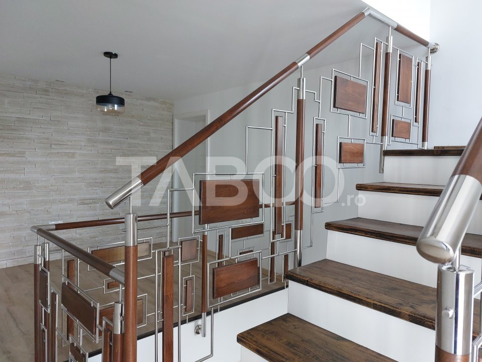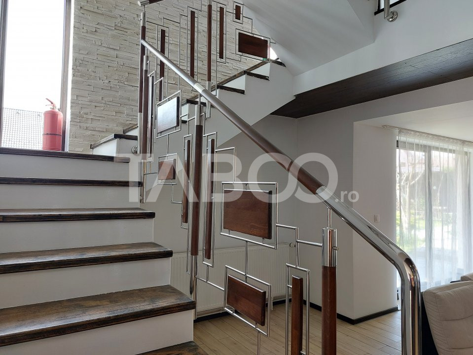 La parter este livingul generos si luminos, mobilat in asa fel incat poti avea activitati in care pot participa multe persoane, bucataria este open space, mobilata si utilata modern, o baie, o camera tehnica, iar pe scara interioara foarte artistica ajungem la etaj unde sunt 2 dormitoare spatioase si o baie amenajata cu cabina de dus.