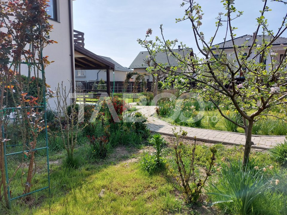 Casa individuala deosebita de inchiriat, renovata in 2022 compusa din 5 camere, o bucatarie, 3 bai si gradina de 780 mp aranjata cu o multime de flori si pomi fructiferi, pe o strada retrasa aproape de padure in Cartierul Arhitectilor Sibiu.