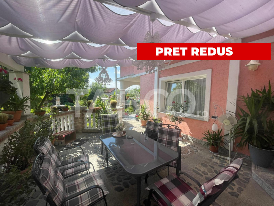 Proprietatea are o frumoasa terasa de 50 mp amenajata modern oferind o frumoasa priveliste catre gradina, lacul cu pesti exotici, frumoasa arcada de piatra si multe alte plante ornamentale care transforma gradina intr-un loc minunat de relaxare dupa cum se vede in poze.