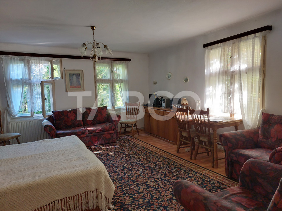 Casa saseasca autentica de vanzare compusa din 2 apartamente care au in total 4 camere, 2 bucatarii si 2 bai plus teren liber 300 mp in Cisnadioara.
