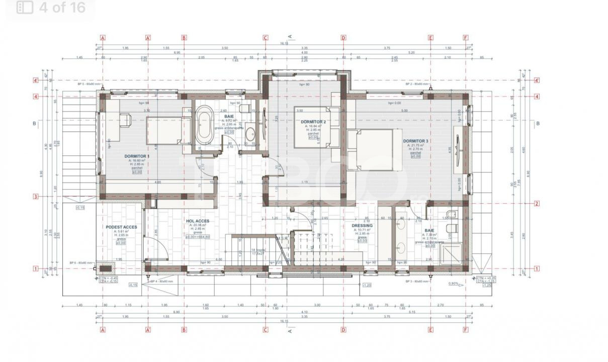 - Parter: 3 dormitoare, 2 bai, dressing;