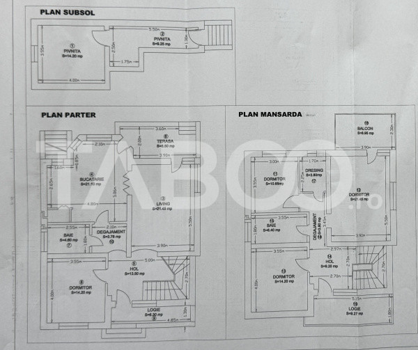 ~ Mansarda: hol, trei dormitoare, baie, un balcon si o terasa si zona de acces in pod ( care este foarte inalt si perfect pentru depozitare).