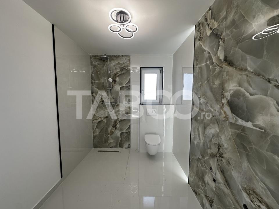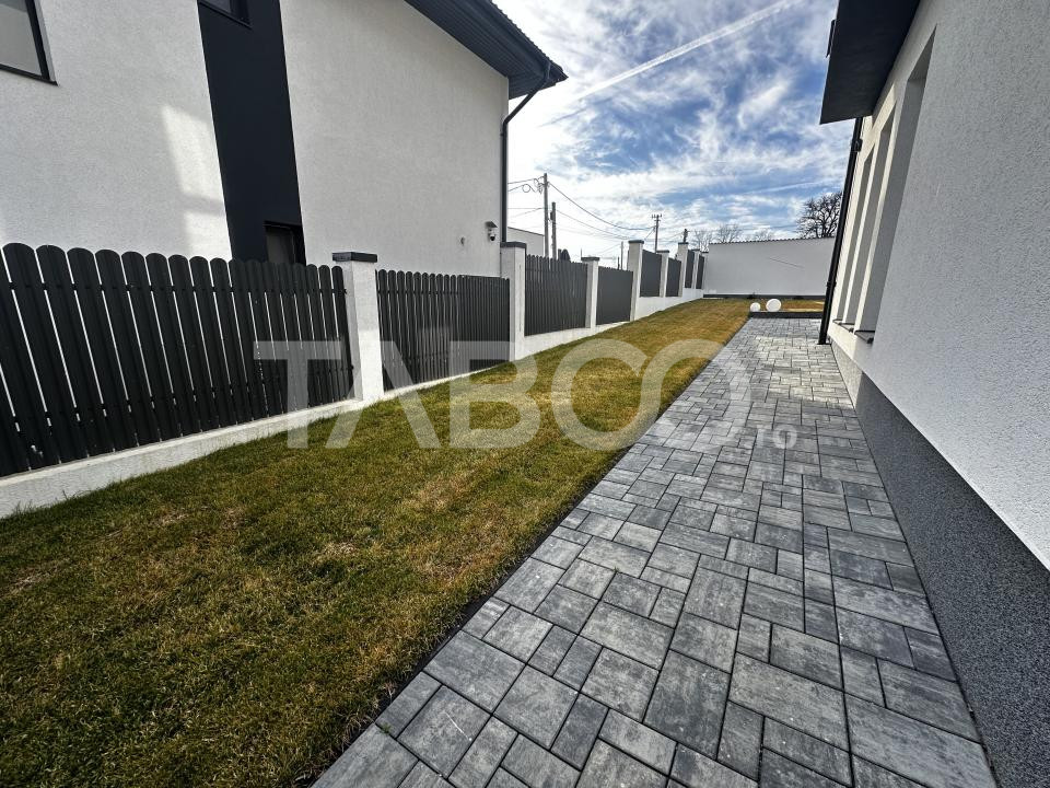Curtea are 498 mp, cu deschidere de 17 ml, amenajata cu gazon tip rulou si sistem de irigare controlabil de pe telefon. Gardul este din beton, cu profile decorative si banda LED integrata. Exista locuri de parcare atat in curte, cat si in exterior.