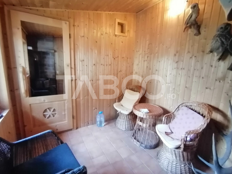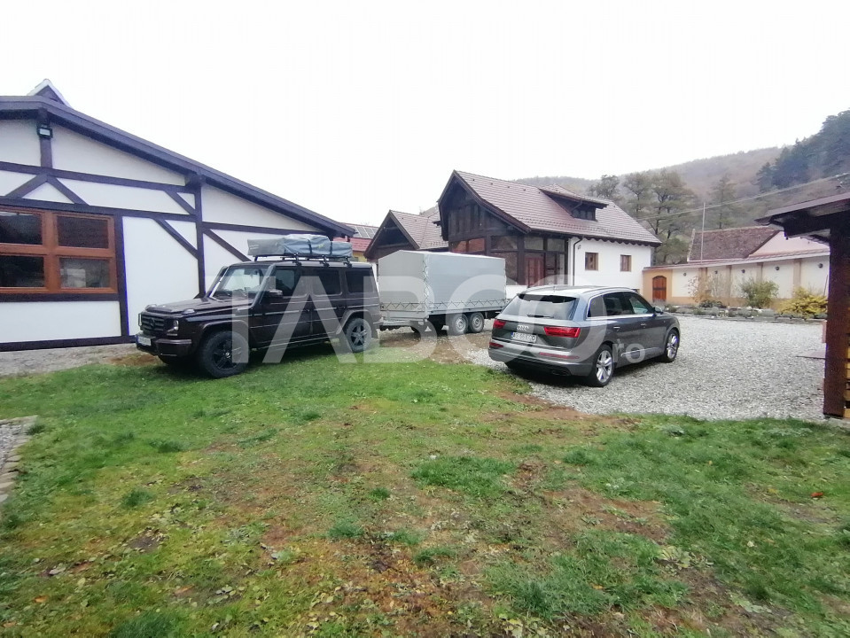 Conac de vanzare teren 5000 mp 2 garaje crama sauna Saliste Sibiu