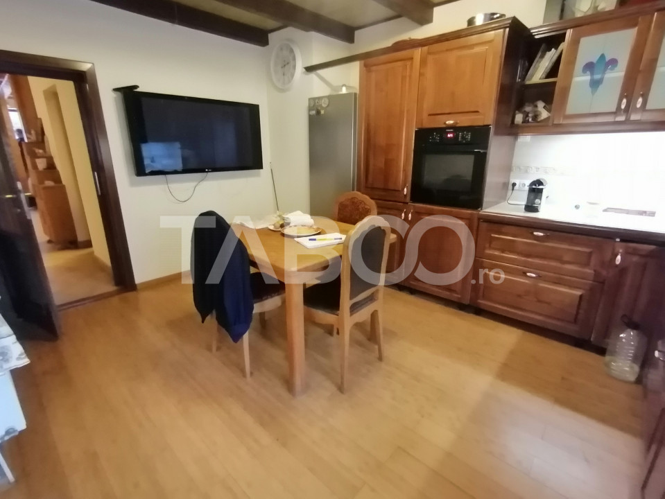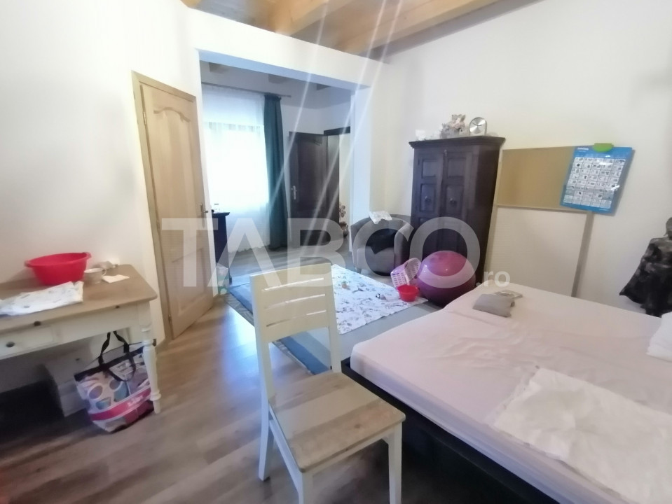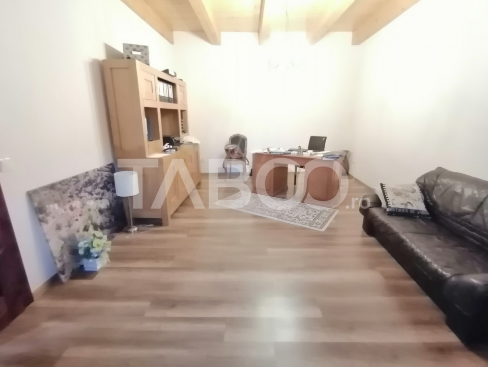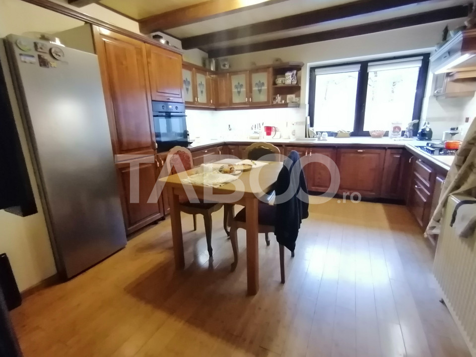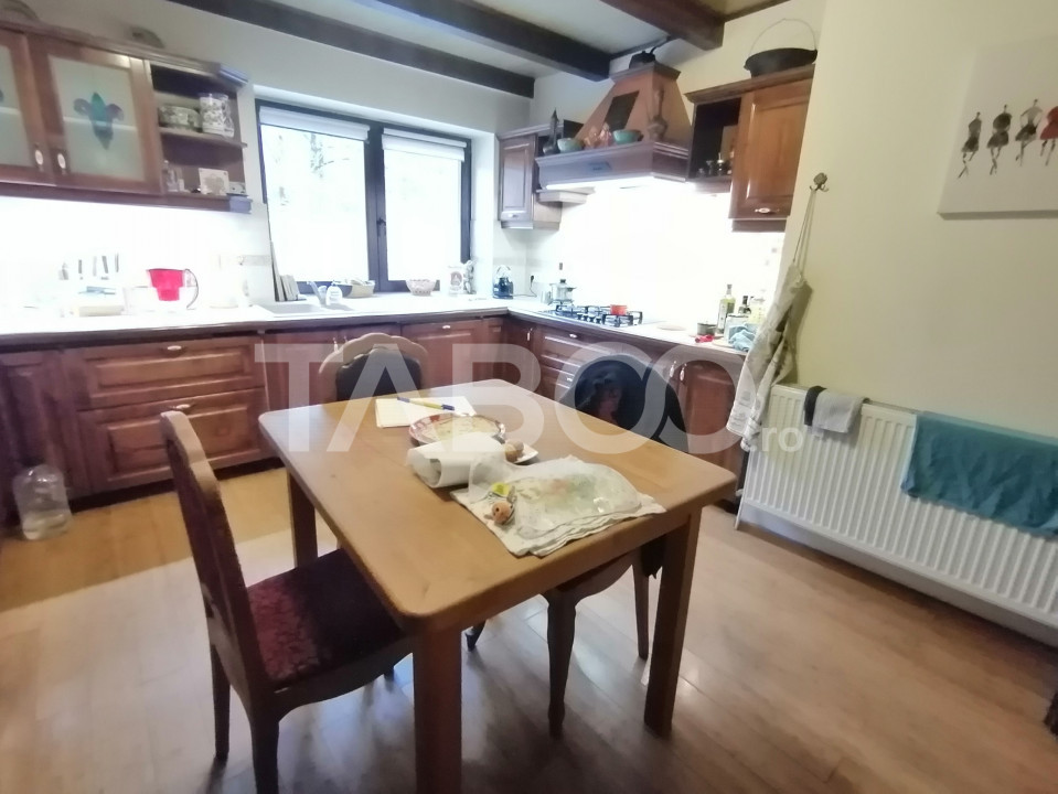 Daca doresti o locuinta ideala pentru tine si familia ta, un loc de refugiu si relaxare, pretabil si ca investitie, aceasta casa aflata intr-o zona linistita, ferita de aglomeratia orasului, la cateva minute de mers cu masina pana in Sibiu, aproape de autostrada, cu terasa, curte mare, sauna, crama, pivnita, este alegerea perfecta!