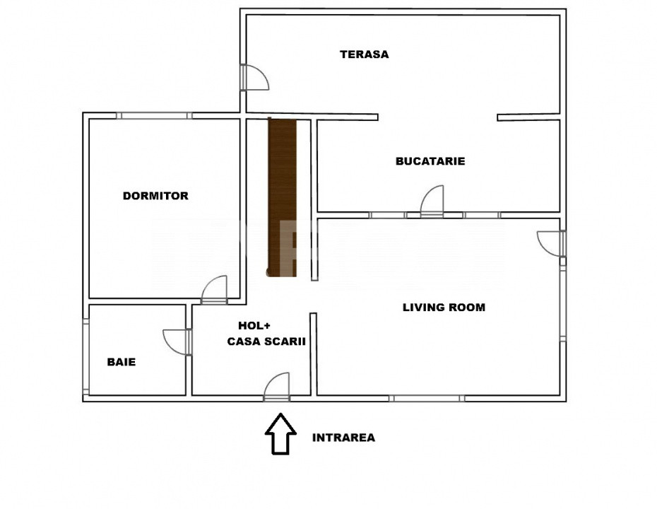 ~ Etaj: hol, casa scarii, 2 dormitoare, baie.