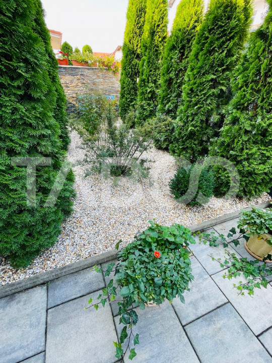 ~ Parter: hol, living spatios cu semineu, baie, dormitor, bucatarie, terasa inchisa cu geamuri de sticla, cu vedere spre gradina casei tale;