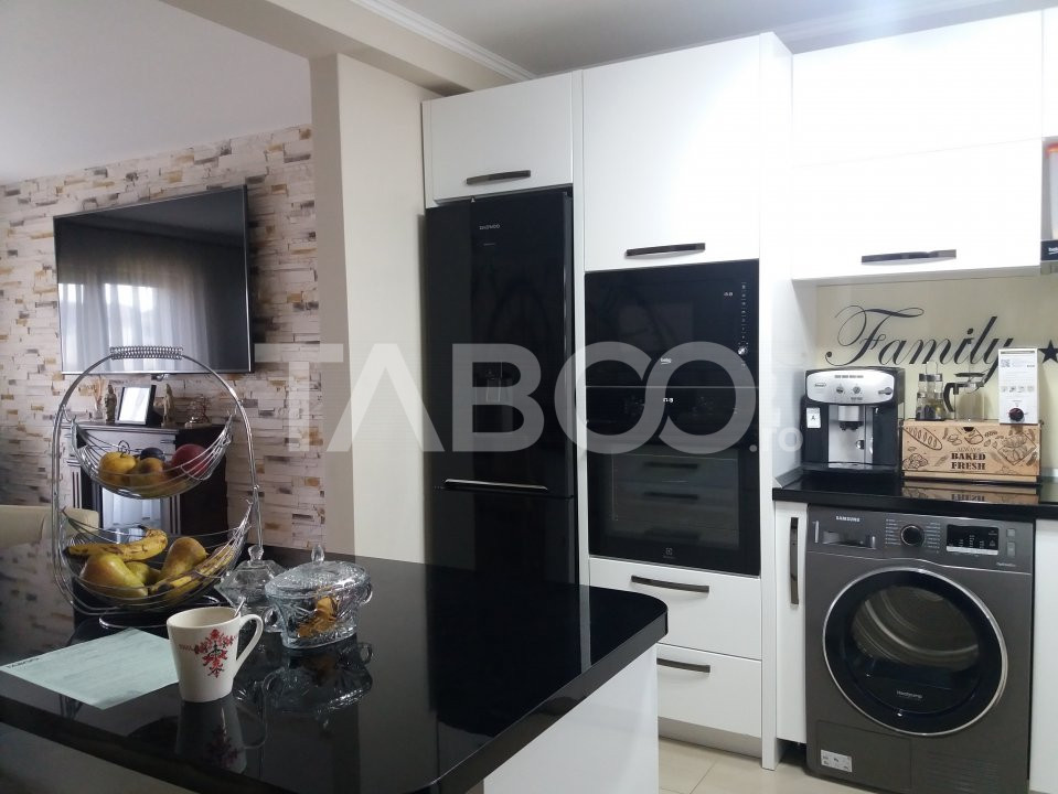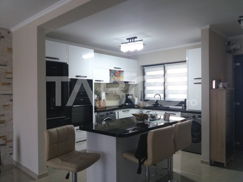 Incalzirea casei se realizeaza prin centrala propie + calorifere, casa este izolata termic. Se vinde mobilata si utilata, iar finisajele interioare sunt moderne, cu usa de termopan la intrare, usi din lemn la interior, ferestre din pvc cu termopan, podele cu parchet si gresie, iar peretii cu vopsea lavabila si faianta, curent electric, gaz, canalizare, contorizare separata, frigider, masina de spalat rufe, masina de spalat vase, cuptor, hota, cafetiera.