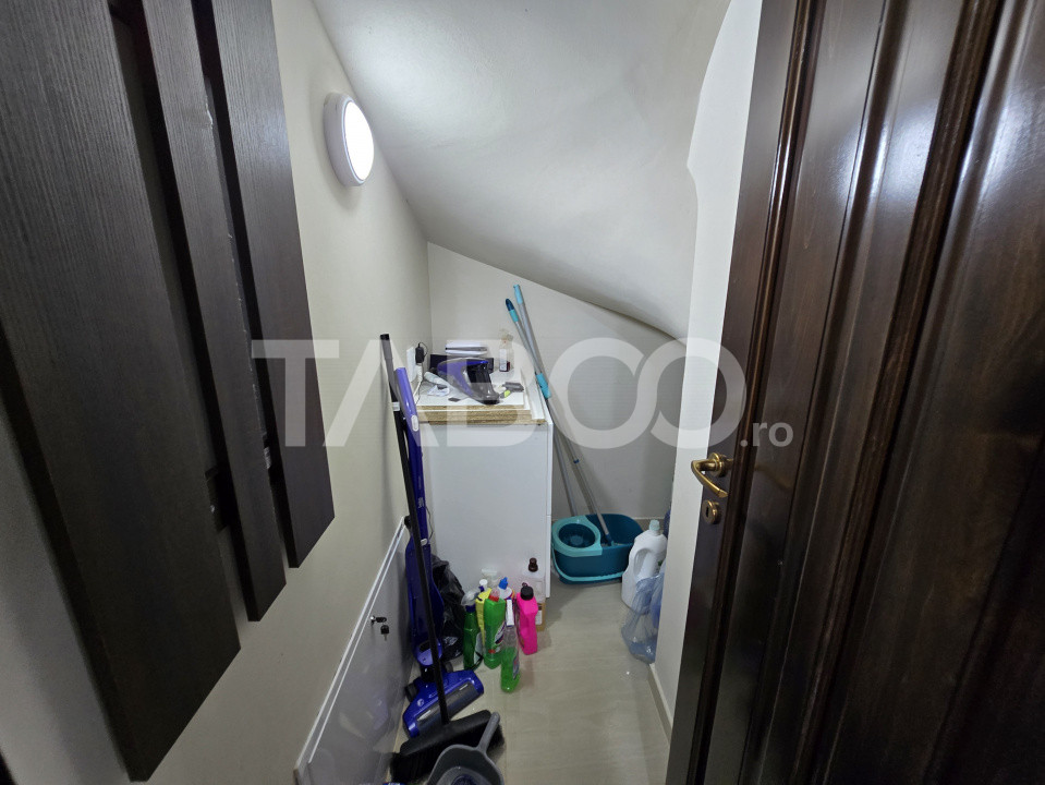 TABOO Imobiliare iti propune spre vanzare o casa de tip triplex in Sibiu zona Cartierul Arhitectiilor aproape de magazinul Lidl, aflata pe un teren in suprafata de 159 mp avand un front stradal de 8 metri si o curte libera de 54 mp. Casa a fost construita in anul 2018 si renovata in 2022 cu orientare spre est, pe structura de caramida cu un regim de inaltime Parter + Etaj compartimentata astfel: