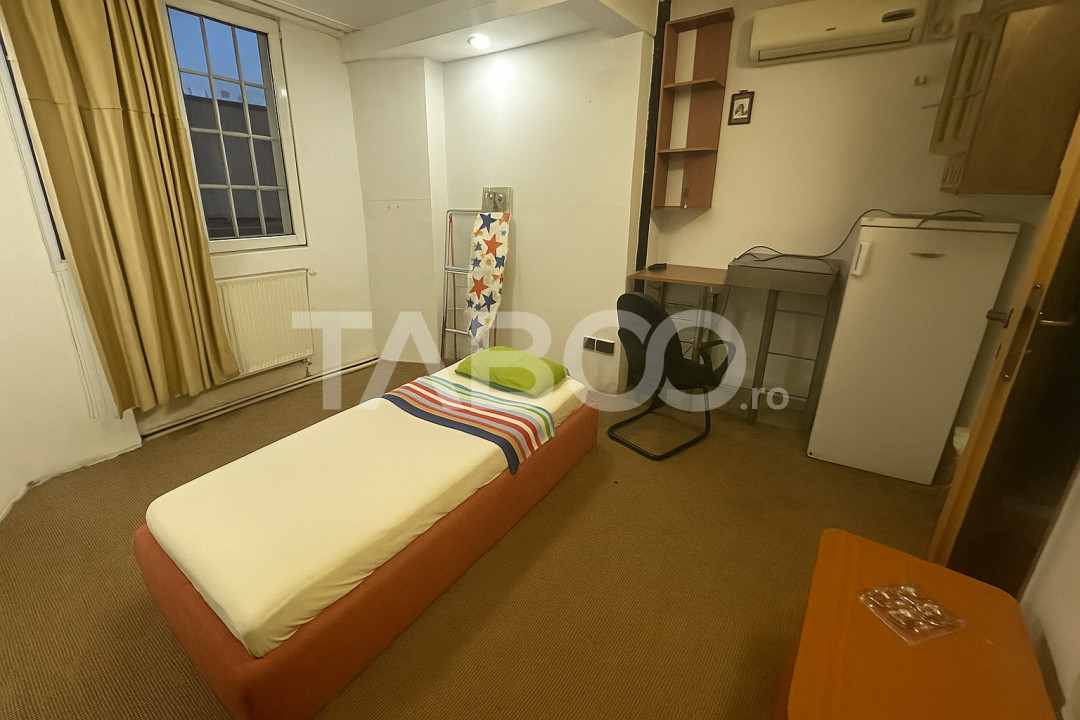 TABOO Imobiliare propune un studio de inchiriat cu 1 camera, decomandat, situat in localitatea Sibiu, zona Ultracentral, aflat la etajul 1 intr -un imobil tip casa/vila cu regim de inaltime pe Parter + 1 Etaj, structura caramida. Suprafata utila de 30 mp.