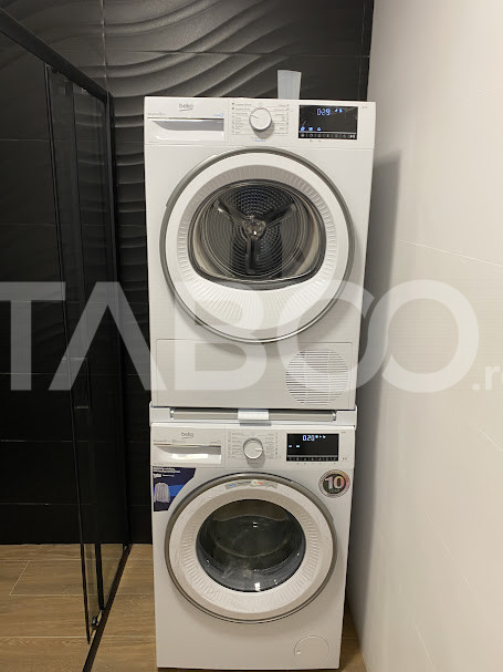 Garsoniera se inchiriaza mobilata si utilata cu: plita electrica, hota, masina de spalat rufe, uscator rufe, frigider cu congelator, cuptor cu microunde si TV.