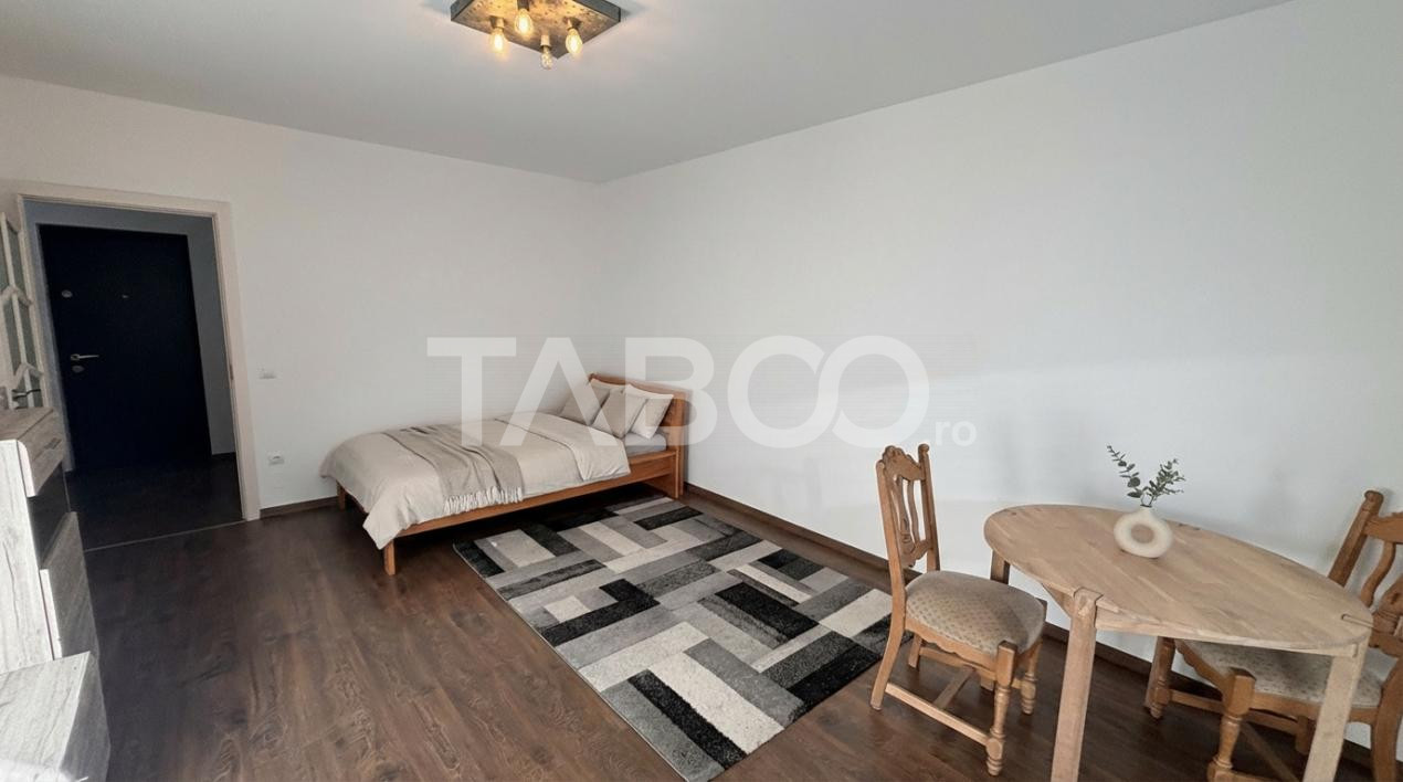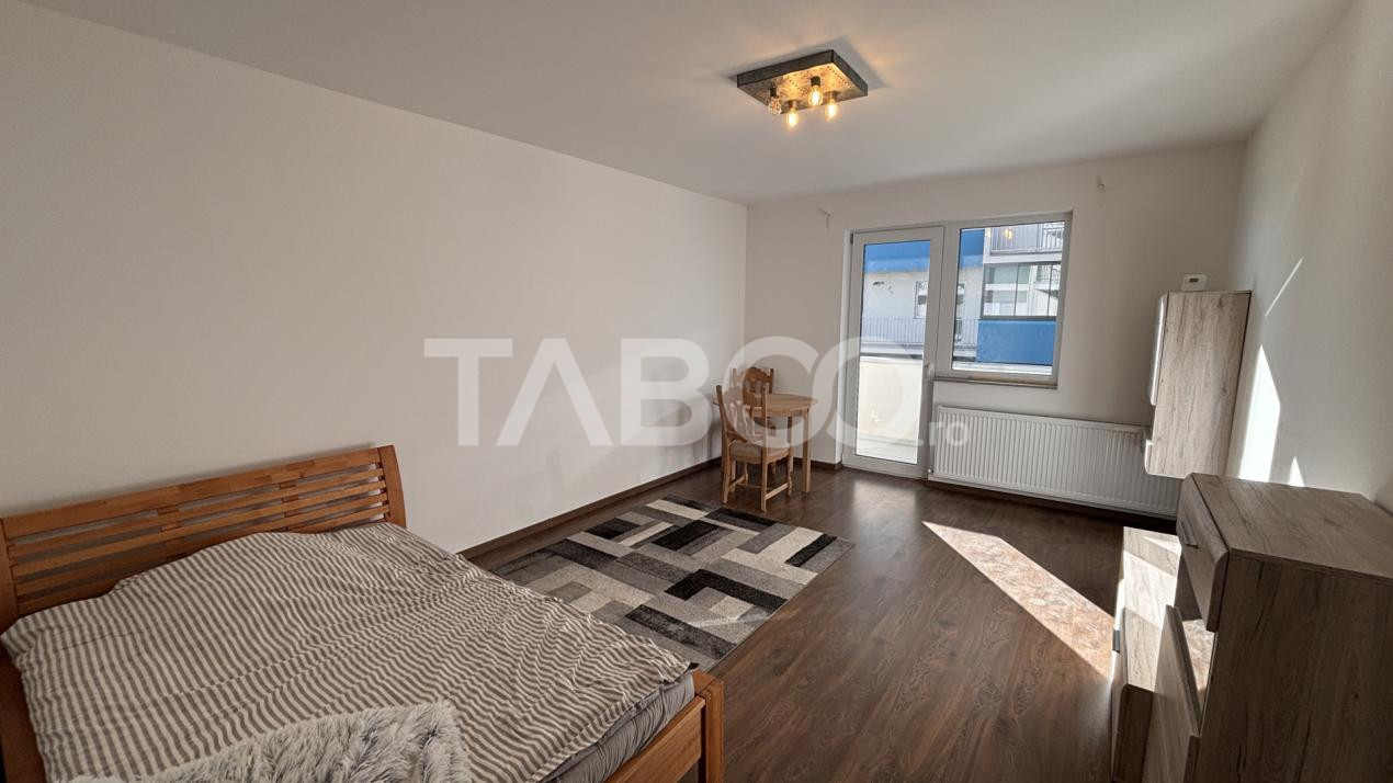 TABOO Imobiliare propune o garsoniera de inchiriat cu 1 camera, decomandata, situata in localitatea Sibiu, zona Industrial Vest, aflata la etajul P intr -un imobil tip bloc mixt cu regim de inaltime pe Parter + 4 Etaje; anul constructiei 2022, structura caramida. Suprafata utila de 35 mp + balcon de 5 mp.