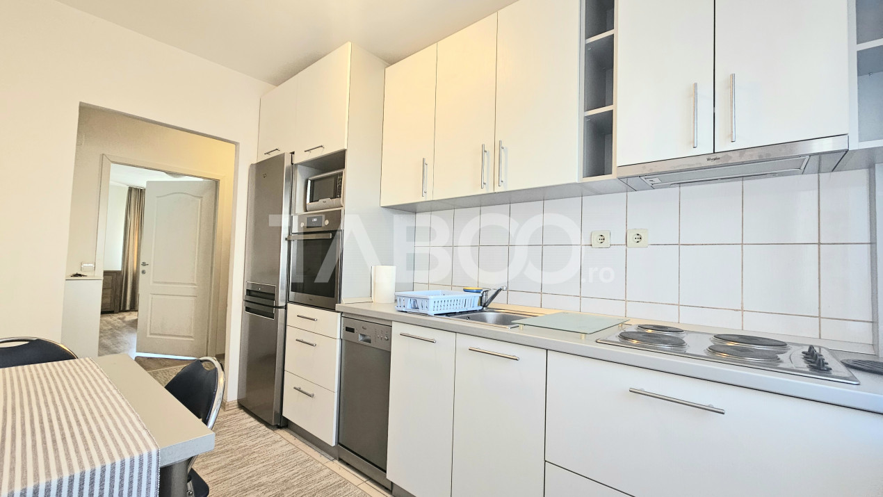 Garsoniera este amenajata cu multa atentie la detalii, fiind mobilata cu piese de mobilier moderne si de calitate, in culori neutre care creeaza un ambient placut si relaxant. Bucataria este complet utilata, avand la dispozitie un aragaz, frigider, cuptor cu microunde, plita electrica, hota si masina de spalat vase, toate acestea asigurand confortul necesar pentru gatit si intretinerea locuintei In plus, garsoniera dispune de o debara utila pentru depozitare, precum si de un dressing spatios pentru haine si alte obiecte personale. In apropiere se gaseste un magazin alimentar Lidl, precum si diverse spatii verzi.