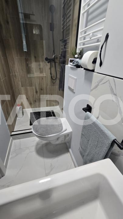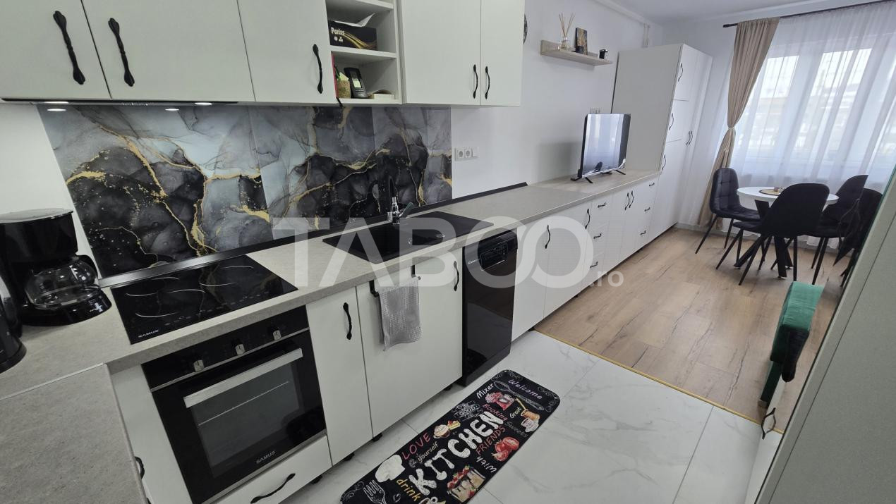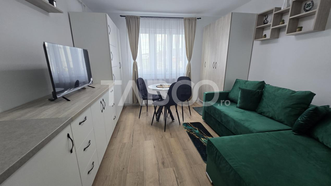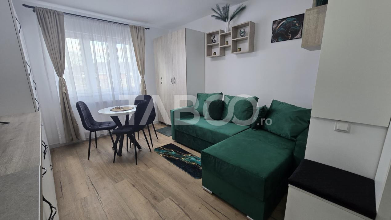 Garsoniera se vinde mobilata si utilata cu: plita electrica, cuptor electric, hota, masina de spalat rufe cu uscator incorporat, masina de spalat vase, frigider cu congelator.