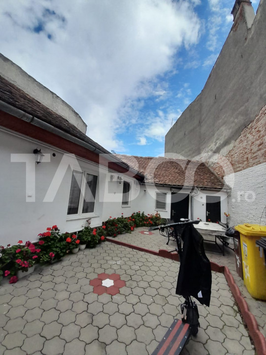 TABOO Imobiliare propune o garsoniera de vanzare cu 1 camera, decomandata, situata in localitatea Sibiu, zona Orasul de Jos, aflata la etajul P intr -un imobil tip casa/vila cu regim de inaltime pe Parter + Etaje; anul constructiei 1950, structura caramida. Suprafata utila de 30 mp + gradina de 50 mp.