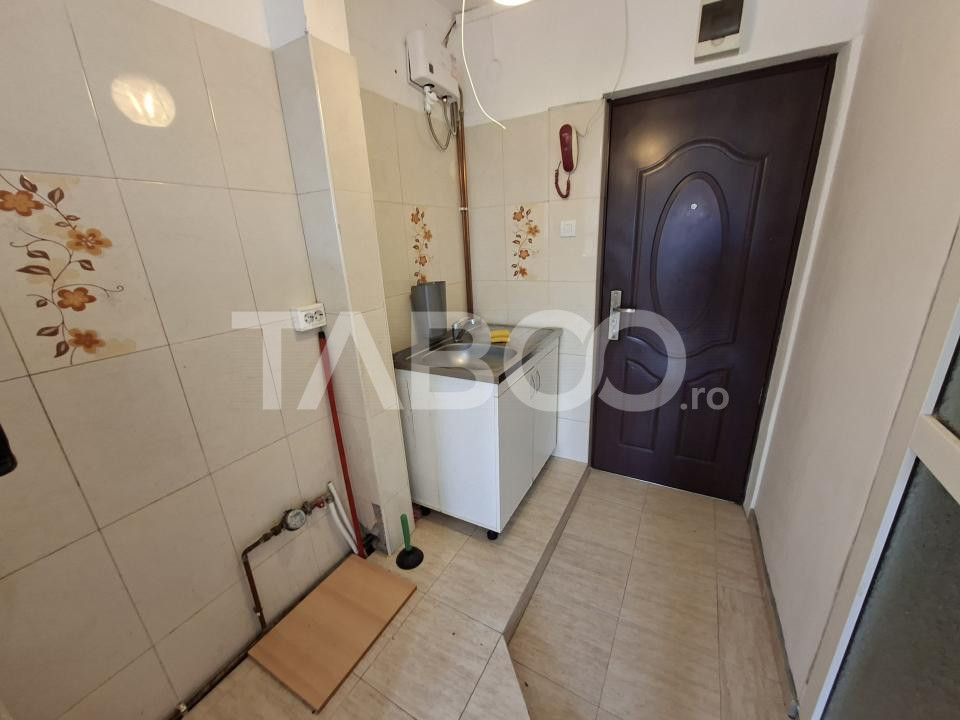 TABOO Imobiliare propune o garsoniera de vanzare cu o camerea, nedecomandat, situat in localitatea Sibiu, zona Terezian, aflat la etajul 4 intr -un imobil tip bloc cu regim de inaltime pe Parter + 4 Etaje si mansarda.; anul constructiei 1980, structura caramida. Suprafata utila de 15 mp.