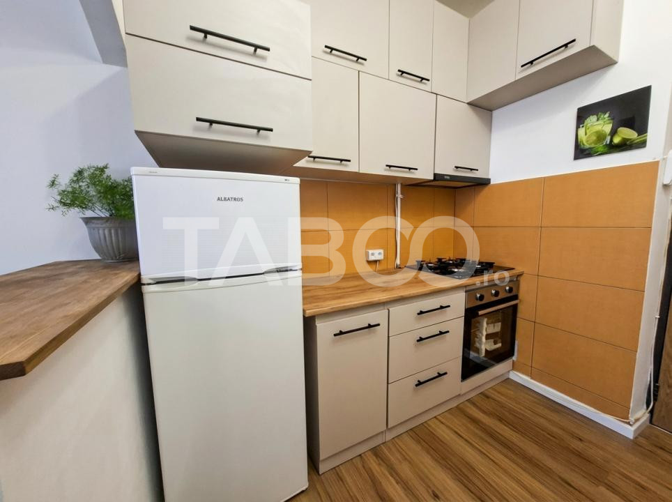 Garsoniera de vanzare, nedecomandata, 21 mp, zona Turnisor din Sibiu. Garsoniera complet renovata, cu mobilierul si electrocasnicele noi.