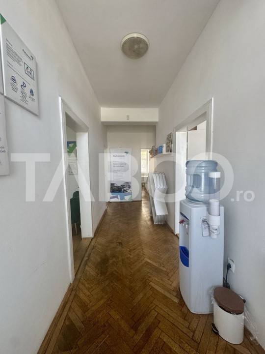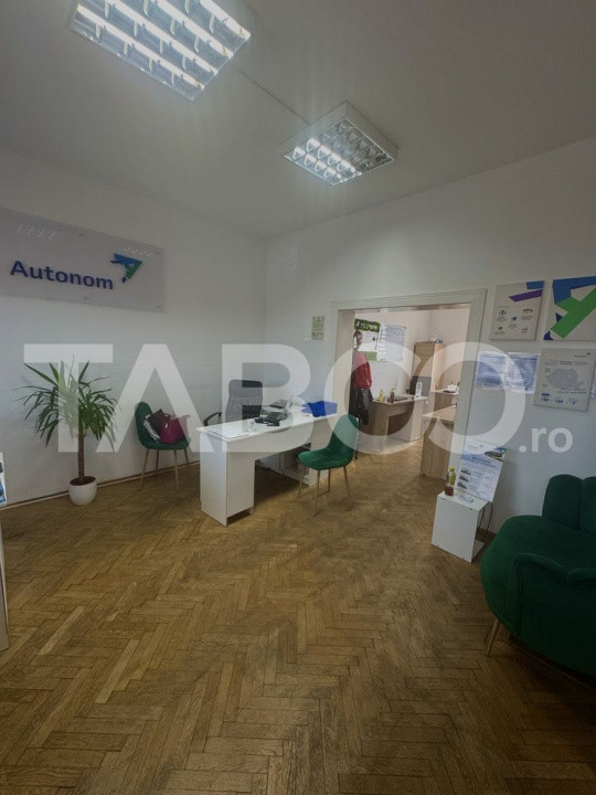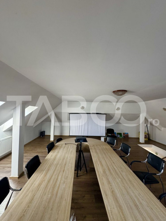 Doresti sa muti birourile firmei intr-o zona mai buna? TABOO Imobiliare iti propune acest spatiu pentru birouri de inchiriat in Sibiu, in zona Centrala. Spatiul este compus din 5 incaperi si are suprafata utila de 203 mp. Spatiul de inchiriat este compus din 4 camere la parter, bucatarie la parter, 2 bai si la masarda spatiu pentru sedinte. Imobilul este o cladire de tip casa/vila, construit in anul 1990, pe structura de caramida, renovat in anul 2019. Incalzirea acestuia se realizeaza prin centrala proprie, calorifere.