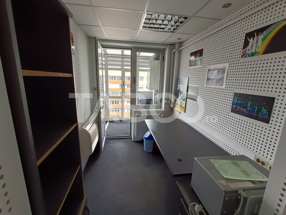 Spatiul se afla la etajul 10 al unui bloc cu 10 etaje si a functionat ca spatiu de birouri al unei firme; este compartimentat astfel incat pot functiona un numar de 5 birouri. Balconul este inchis si are o suprafata de 10 mp. Spatiul dispune de instalatie de aer conditionat, pentru zilele calduroase de vara.
