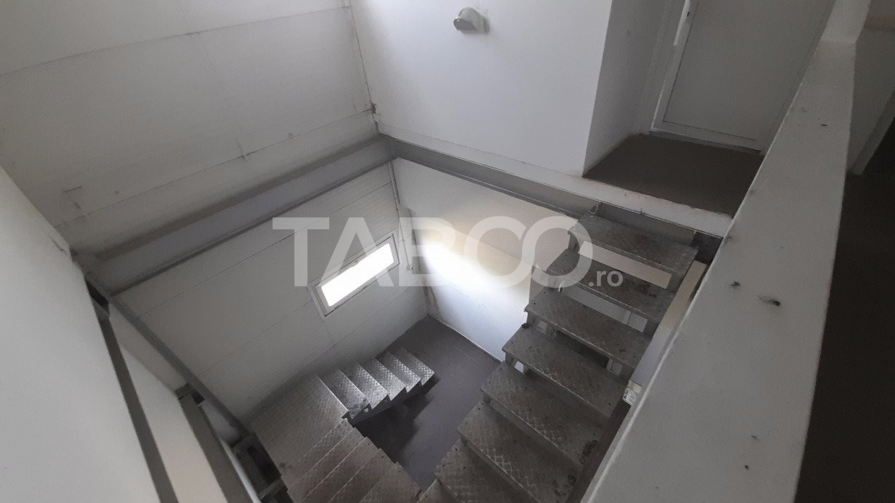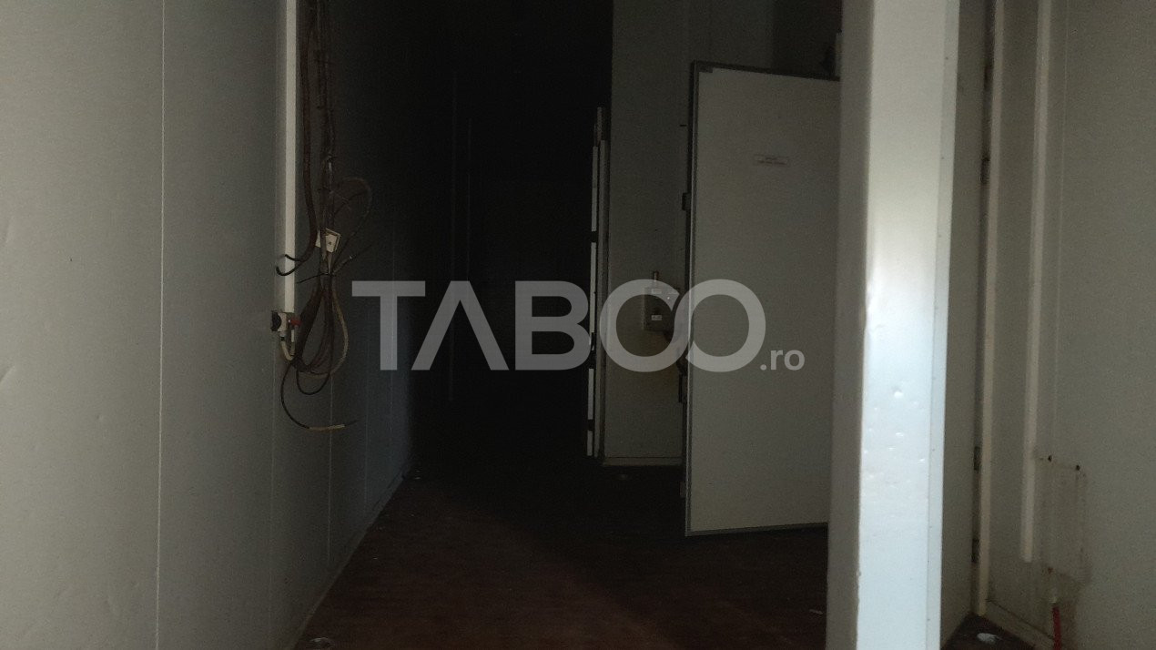 Hala industriala de inchiriat in zona Veterani Sibiu, cu 1164 mp utili compartimentati in spatiu de productie de 970 mpu si spatiu de birouri de 194 mp utili si teren aferent de 1000 mp. Extra se poate inchiria un al doilea corp de cladire cu 374 mpu si mai mult teren aferent pana la suprafata maxima de 5600 mp.